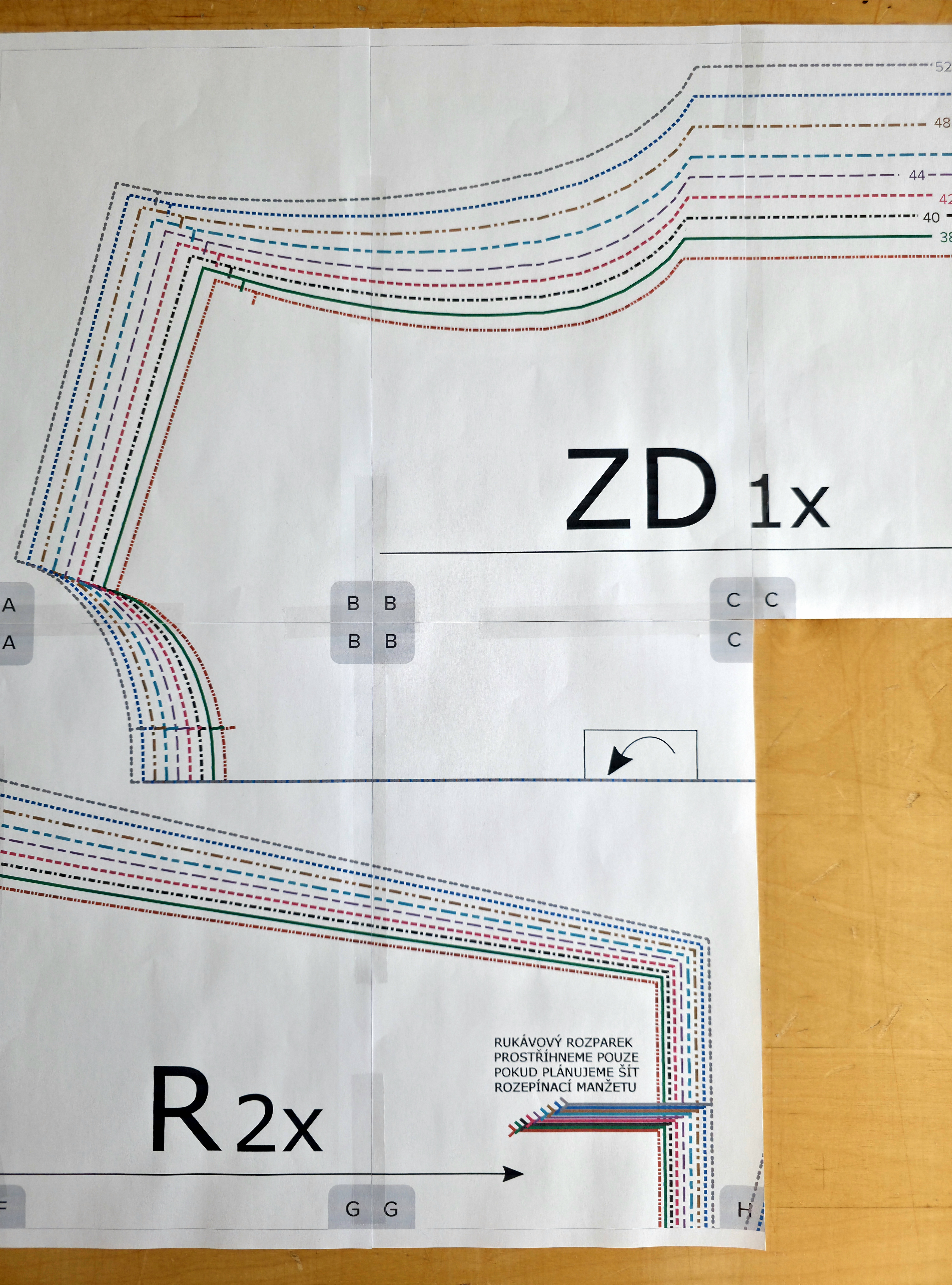 Poté, co spojíte všechny papíry podle schématu, je váš střih připraven k použití! Znám švadlenky, které se rozhodly si vzor obkreslit na průhledný papír a přidat švové přídavky. Možná to budete chtít udělat, ale není to nutné. Můžete střih vystříhnout takto slepený a švové přídavky přidat až na látce. Jen se nesmí zapomenout :) Švové přídavky přidejte dle doporučení uvedeného v dokumentaci u každého jednoho střihu.